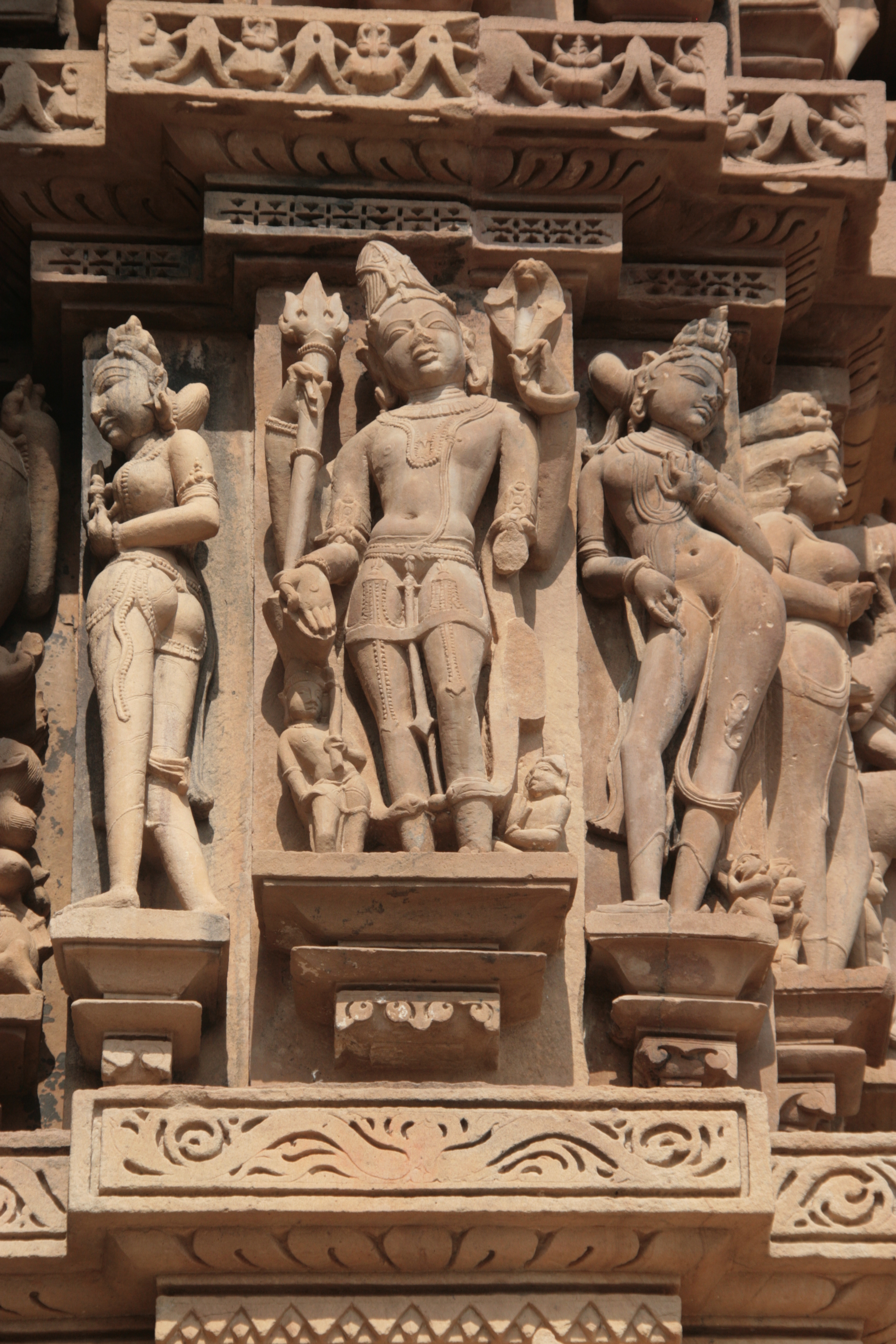 Greek Mythology for example influenced the way the sun god Surya was portrayed. In India the sun was always depicted as a round disc, never as a god in human form. Not until the Greek came to India and carried with them statues of their sun god. On the side of the Lakshmana temple – the first on you’ll come to if you follow the main route – you’ll see Surya wearing boots. You don’t see this with any other Indian god.